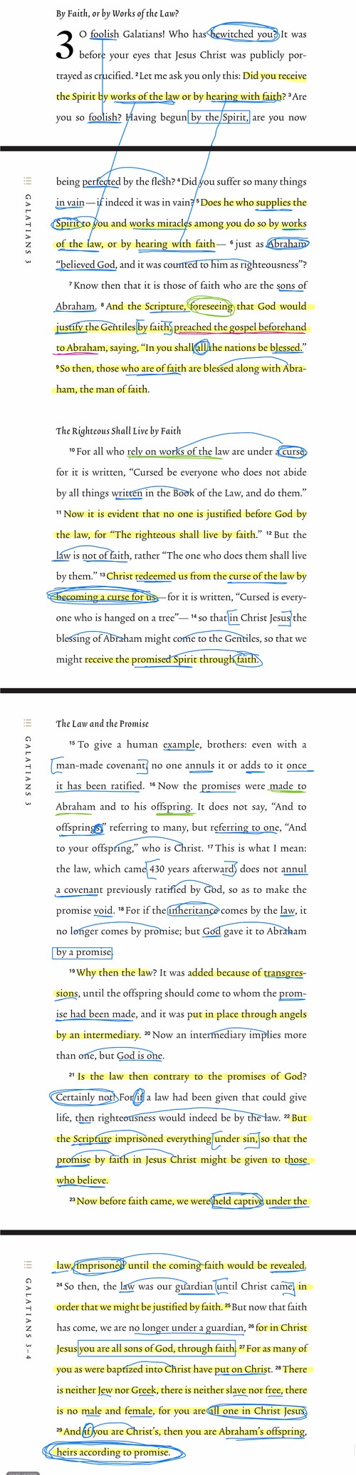 Paul argues that viewing obedience to the Mosaic law as a means to receive blessings is a futile endeavor. Although it may seem feasible to adhere to God's law (Deut. 30:11–14), no one has ever fully obeyed it. Thus, apart from God's saving mercy, everyone remains under the curse of the law. God's original intention was not for people to obtain life through the law. In support of this, Paul quotes Habakkuk 2:4 to emphasize that Scripture teaches that those who are justified by faith will truly live.