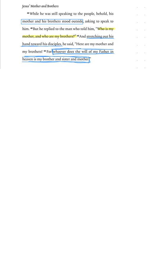 Upon being informed that his mother and brothers are waiting, Jesus' response is somewhat unexpected. He states that his disciples have become like family to him, emphasizing the spiritual bond of doing God's will in a world focused on lineage and heritage. His question about family isn't meant to be harsh but an acknowledgment of this new family of faith: The King gives birth to their royal bloodline, making them now part of a family who stands to inherit royalty themselves.