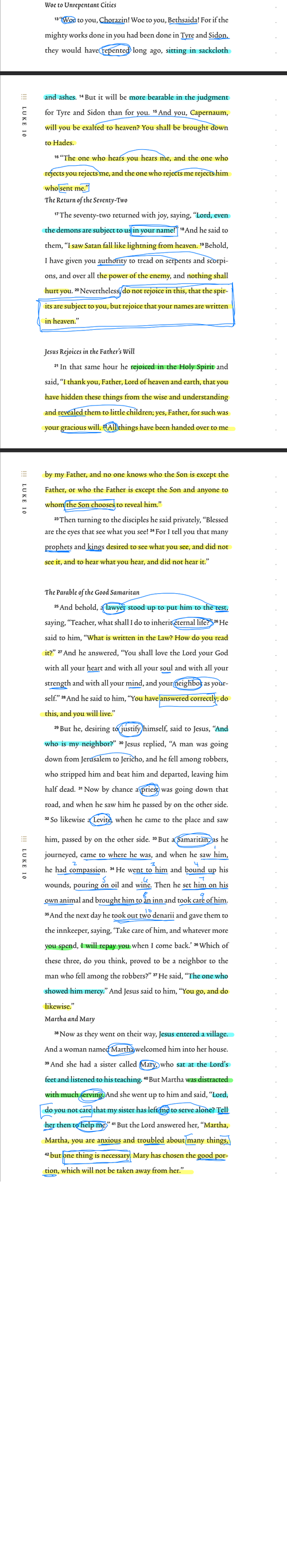 A lawyer asked Jesus what was needed for eternal life, and Jesus responded by asking him how he interpreted the law. Perhaps it is significant that the importance of loving one's neighbor, of being a good neighbor, follows a text about the mission. We are called to bring the good news to the ends of the earth, but following Christ as a disciple means treating every person as a neighbor and loving everyone in our path. The focus on mission may lead us to overlook the needs right in front of us. The lawyer cites Deuteronomy 6:5 and Leviticus 19:18, which instruct us to love God with all our being and love our neighbor. Jesus confirms that if one follows these commands, they will live. The lawyer then inquires as to who his neighbor is. Jesus then tells the parable of the good Samaritan, in which a man is robbed and stripped on his way to Jericho. Rather than helping, a priest and a Levite both pass by. A despised Samaritan, however, stops to tend to the man's wounds, takes him to an inn, and pays his expenses. Jesus then asks the lawyer which of the three was a neighbor, to which the lawyer replies that it was the one who showed mercy. Jesus then encourages the man to do the same.