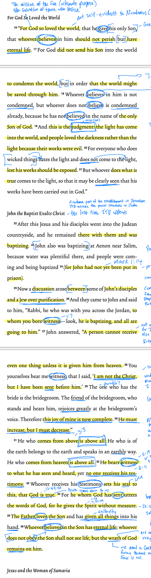 John summarizes the profound nature of the triune God by saying that Jesus speaks the words of God because he is given the Spirit without measure. This means that the Father gives the Spirit to the Son, which allows him to speak God's words. Being the Word, Jesus can receive the Spirit without limit; therefore, God speaks every time he speaks.Those who do not believe will be condemned and perish under God's wrath. On the other hand, those who believe will have eternal life. This is because of God's love for the world and his Son, the rightful king who spoke God's words and received the Spirit's measure. John the Baptist provided reliable testimony about Jesus, and therefore we need to trust, be loyal to, obey, and surrender our lives to him.