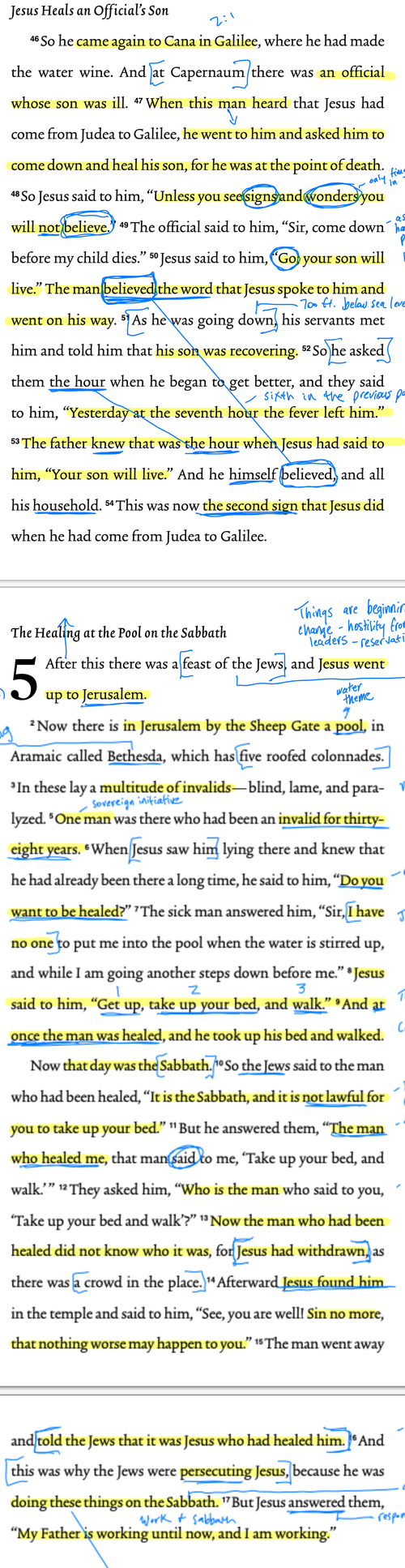 In verse 12, the Jews ask the man who healed him, "Who told you to pick up your bed and walk?" It is interesting to note that their focus is on the fact that Jesus gave instructions that involved carrying a bed on the Sabbath rather than acknowledging the healing miracle that had taken place. It's hard to believe that someone healed by Jesus would want to hurt him. Maybe the man reported Jesus to the Jews because he thought it was the right thing to do, without realizing that the authorities wanted to harm Jesus. Because of his report, the authorities began to persecute Jesus for performing healings on the Sabbath.