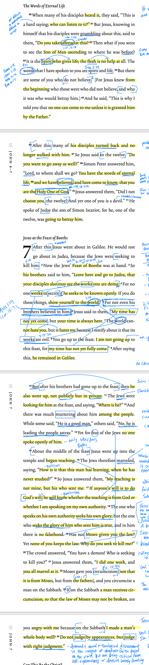 The Feast of Tabernacles celebrates how God provided for the Israelites during their journey through the wilderness. They lived in tabernacles while traveling toward the Land of Promise. This feast is an annual reminder that God's past saving grace will continue to guide and protect the Israelites in the future. However, in chapter 7, Jesus had to go to the feast in secret because some people wanted to kill him.