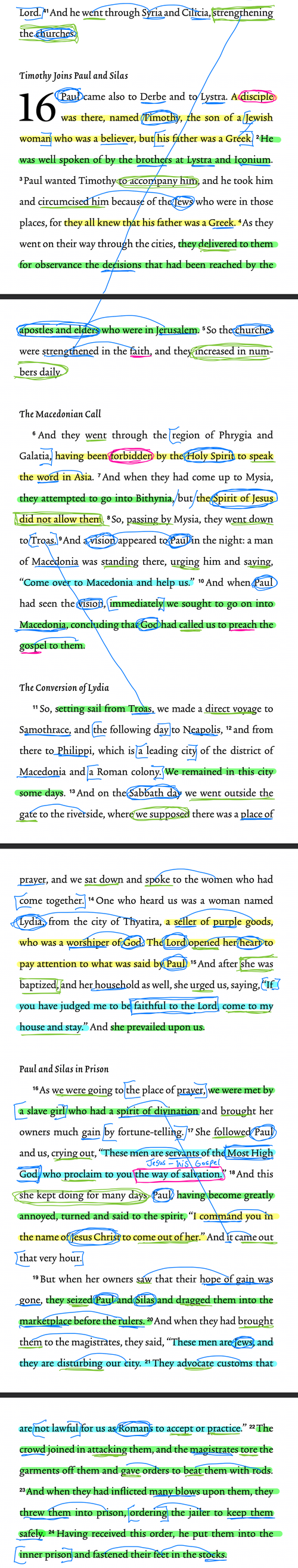 Paul, Silas, and Timothy continue to visit churches and share the decision from the council, which came from the apostles and elders (Acts 16:4). Luke points out that the churches are strengthened, and more people are converted. Making disciples does not stop at converting individuals; it is ongoing. There are some peculiar details about ministry being prevented by the Holy Spirit. It is unclear how Paul, Silas, and Timothy perceive that the Spirit is deterring them from going to Bithynia (v.7) or the reason for it. Whether Paul experiences the vision while awake or asleep is unclear, but the message is. The missionaries are convinced to travel to Macedonia (16:10) and not stay in Troas for long.