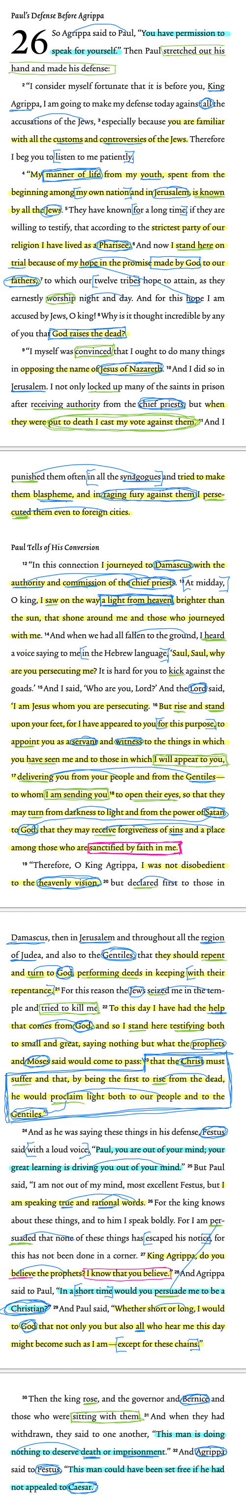 All individuals, including Jews, Paul, and the Gentiles, are called to repent, believe in Jesus, and demonstrate their new covenant relationship through obedience to Him. Repentance and obedience to Jesus serve as indicators of loyalty to God. Festus rejects Paul's gospel, and Paul does not rely solely on rationalistic arguments or pure rationality to present his message. Instead, Paul's personal experience, gospel ministry, and defense align with the rationality of human reason, making them reasonable. Paul's speech clearly reveals his evangelistic intent when he directs his words toward Agrippa. Aware of Agrippa's knowledge of the events in Israel and the teachings of the Bible, Paul associates belief in the prophets with faith in Jesus. Agrippa, fully aware of Paul's attempt to persuade him to become a Christian, responds with a question instead of answering directly. It is significant that Paul's final speech in Acts ends with an appeal to everyone. Agrippa affirms the judgments of other officials, stating that Paul has done nothing wrong and should be released. However, since Paul has appealed to Caesar, there is no turning back.