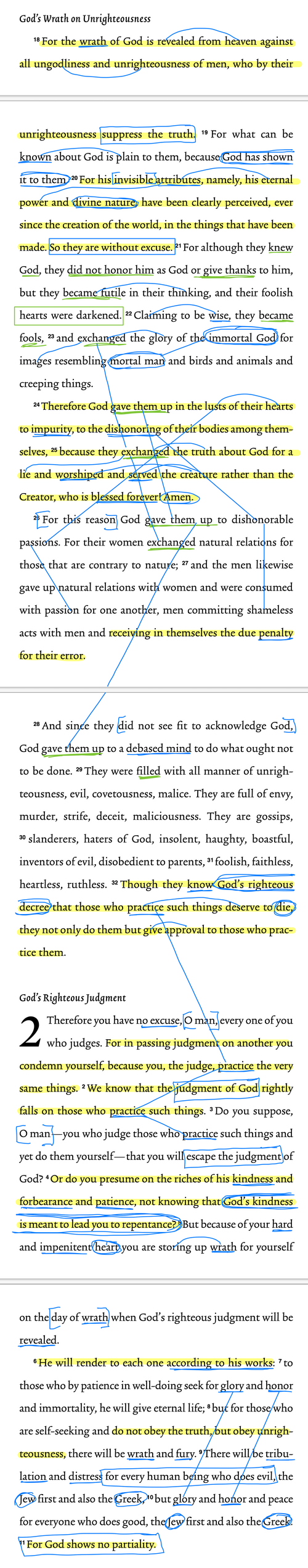 Paul's discourse from Romans 1:18 through 2:11 is a powerful reminder of God's judgment, absolute righteousness, and impartiality. It underscores the necessity of godly living, the dangers of hypocrisy, and the ultimate consequences of individual actions on one's spiritual destiny.