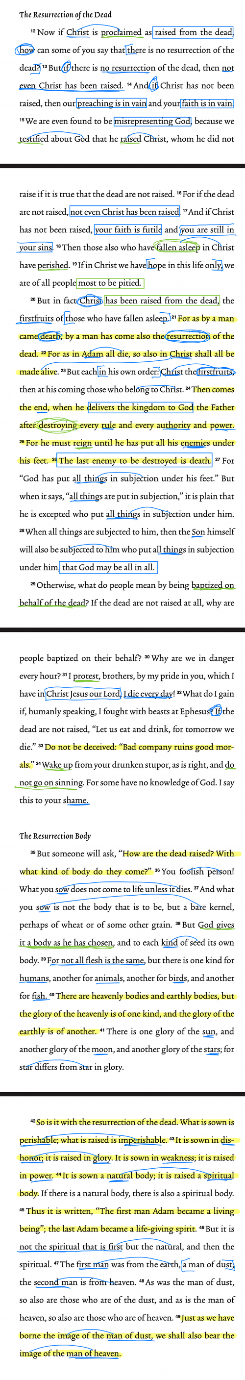 "So, how exactly are corpses raised? What kind of physical body will corpses supposedly have?" Paul uses an analogy to explain this concept. Like seeds in nature, which go through a life-through-death process, it is reasonable to believe that believers' corpses will also transform. Initially, believers have earthly bodies, but later on, God will transform them into heavenly bodies. If God designs his creations to thrive in their respective environments, it is reasonable to assume that he will prepare the resurrected corpses of believers to flourish in his future "kingdom."