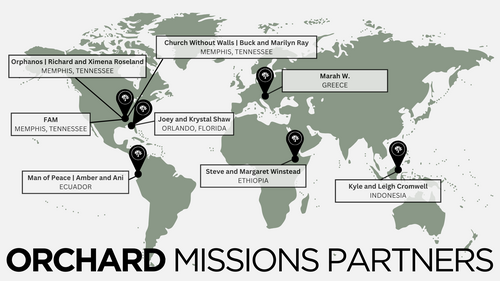 At The Orchard Church, we believe that everyone's a missionary. You don't have to go overseas or quit your job to spread the good news. Jesus has called us to serve those around us, and it's easy to find your mission field. Just look down. Wherever your feet are is your current mission field.